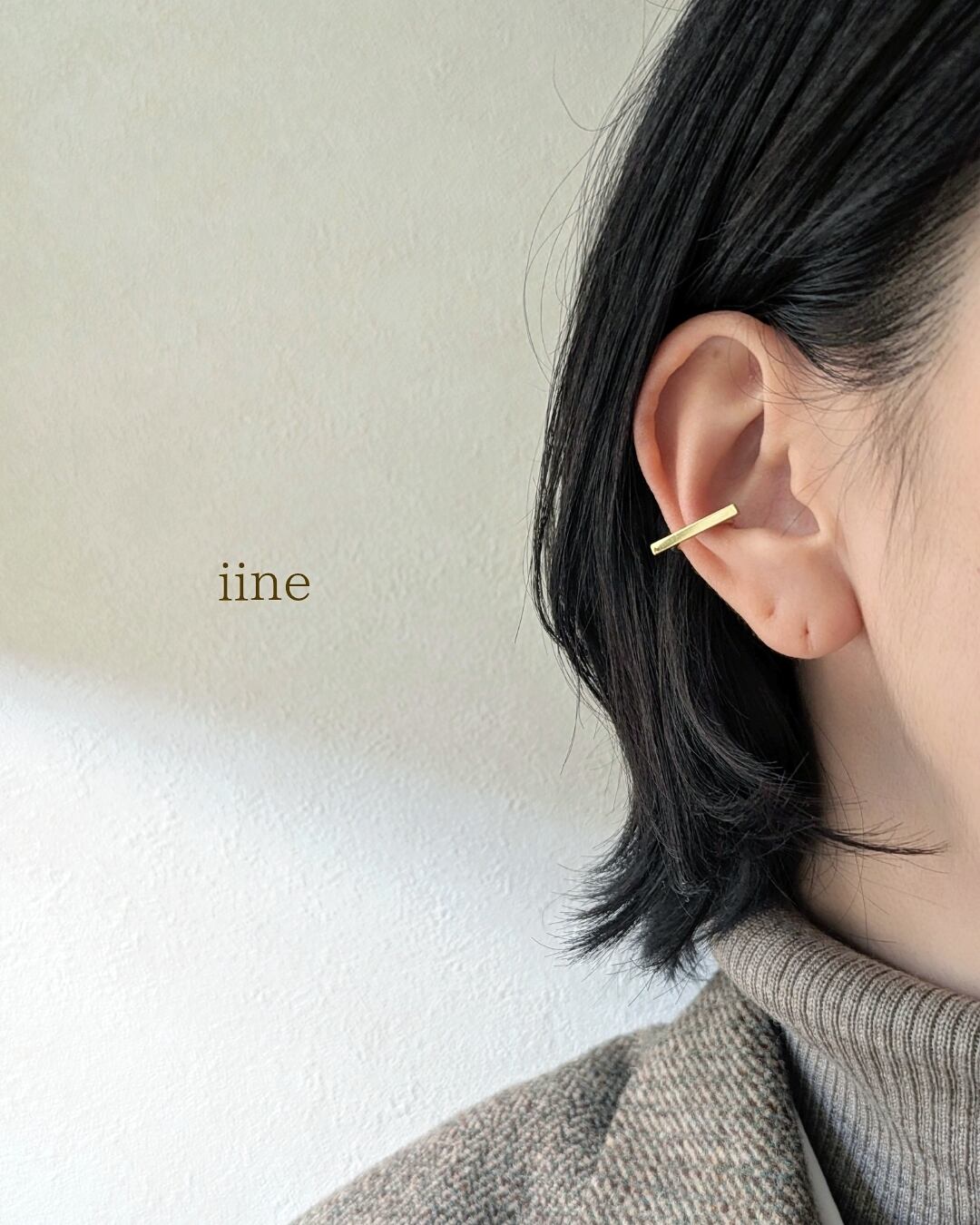 耳から真っ直ぐにはみ出るオーバーサイズのストレートイヤーカフです。