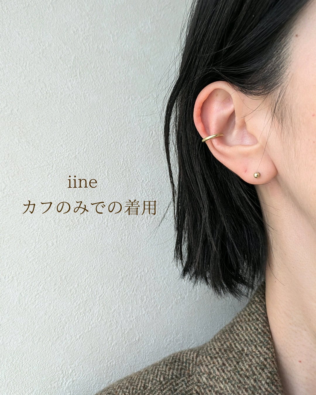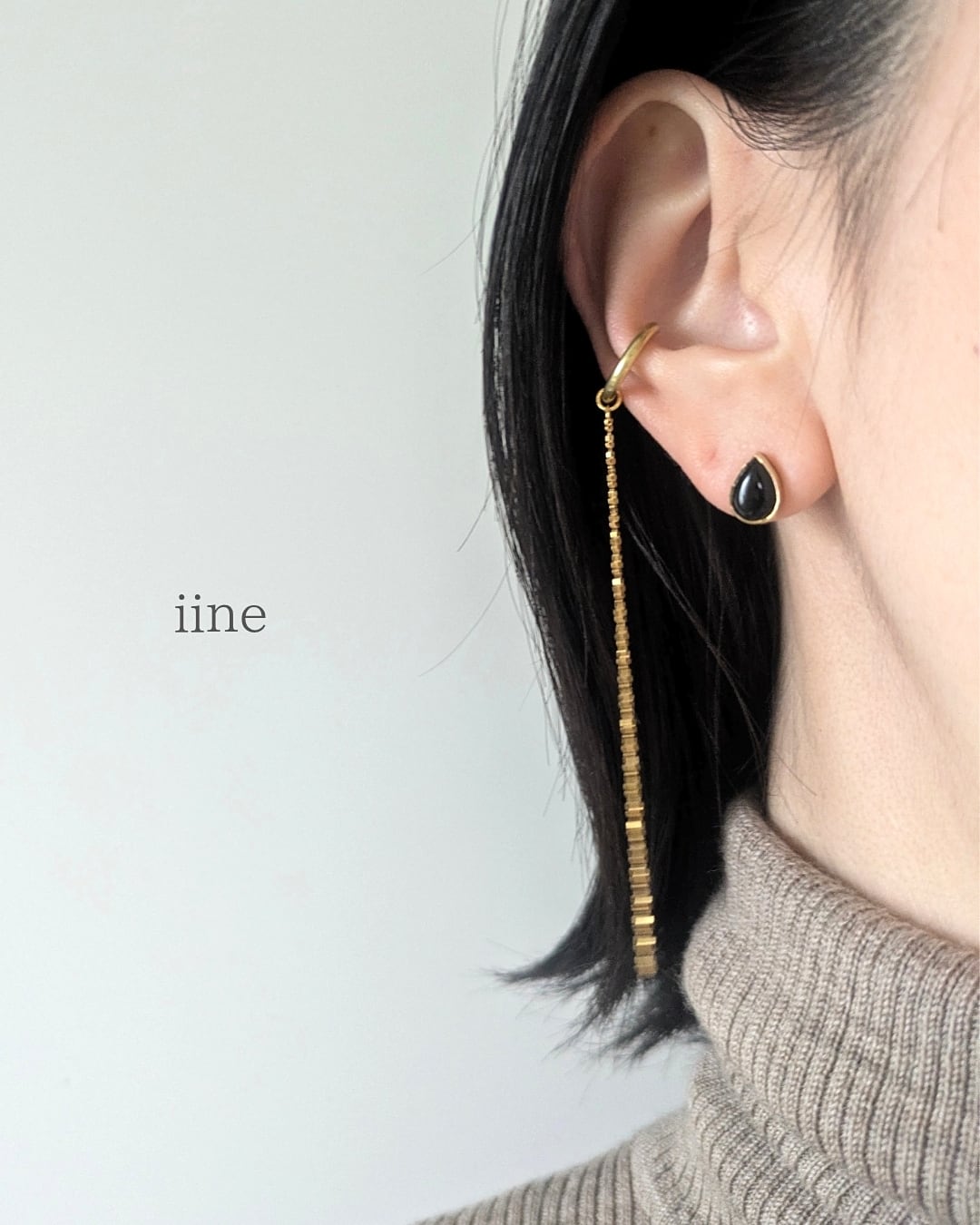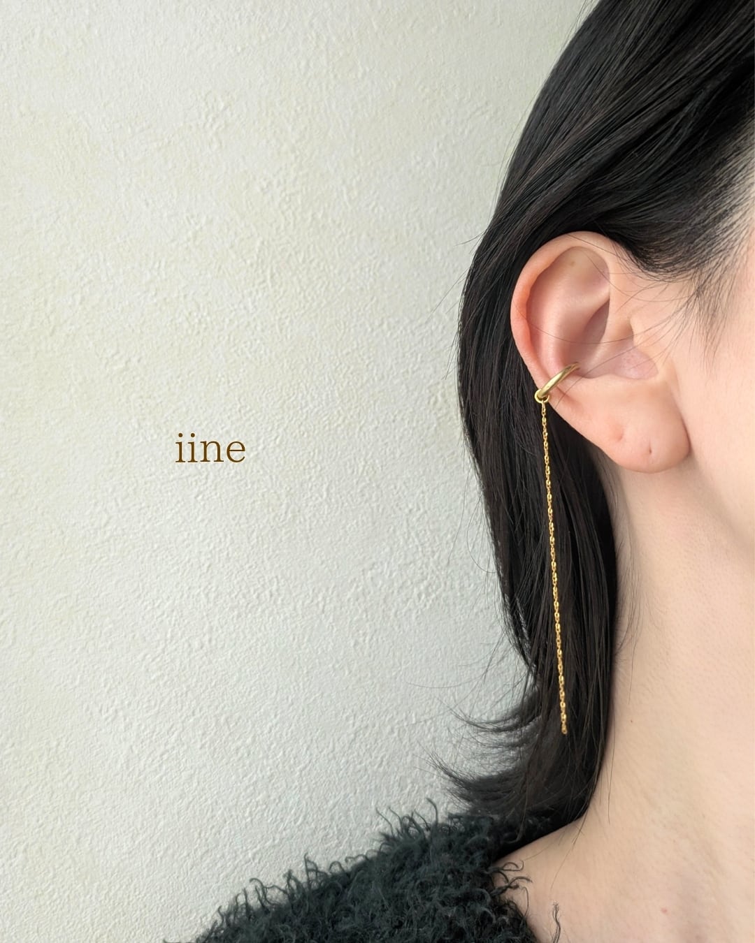 真鍮のシンプルなイヤーカフに14kgfチェーンを合わせました。両耳用です。