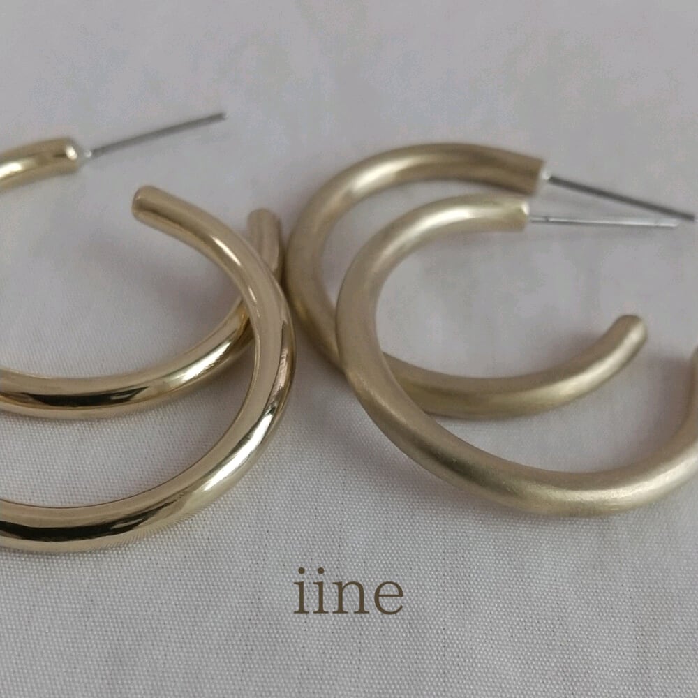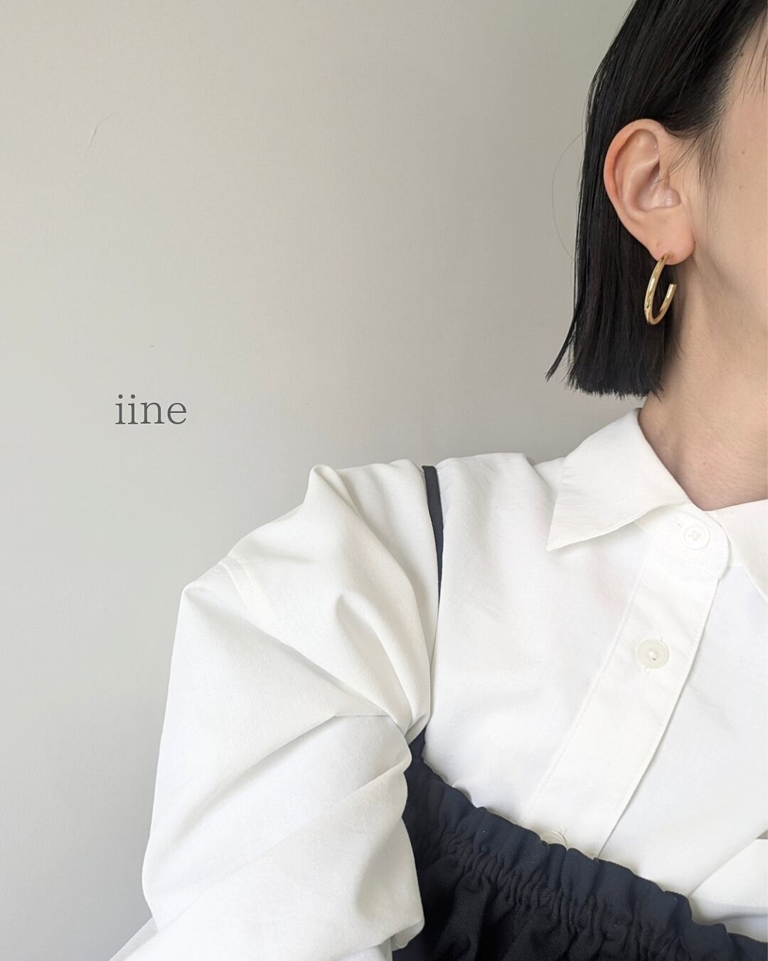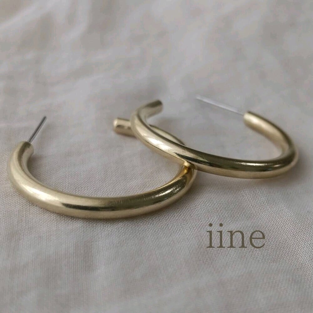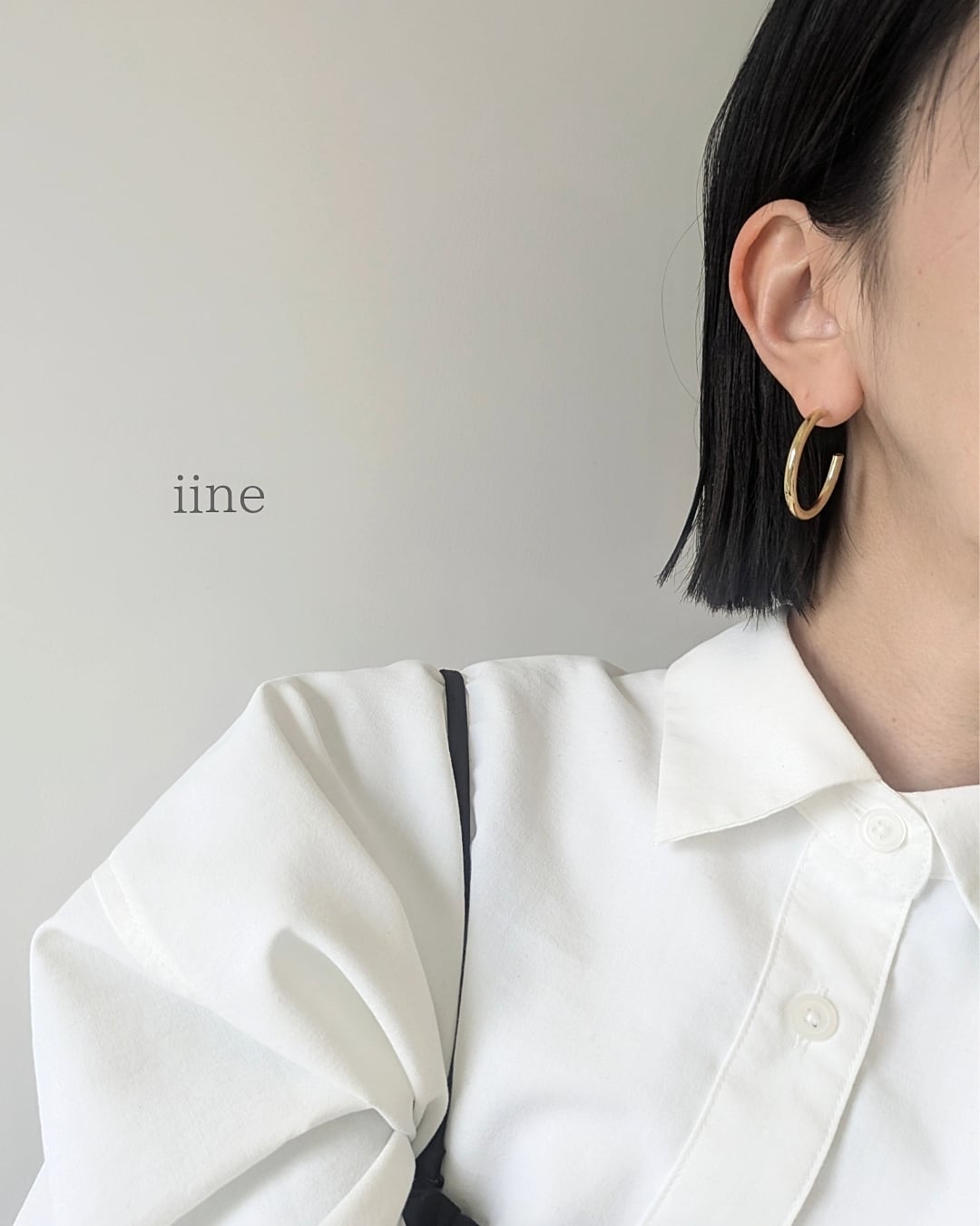 存在感のある太さのフープが顔周りのポイントとなり、カジュアルすぎず、ワンピースなどのレディライクなスタイルにもスッと馴染むアイテムです。
