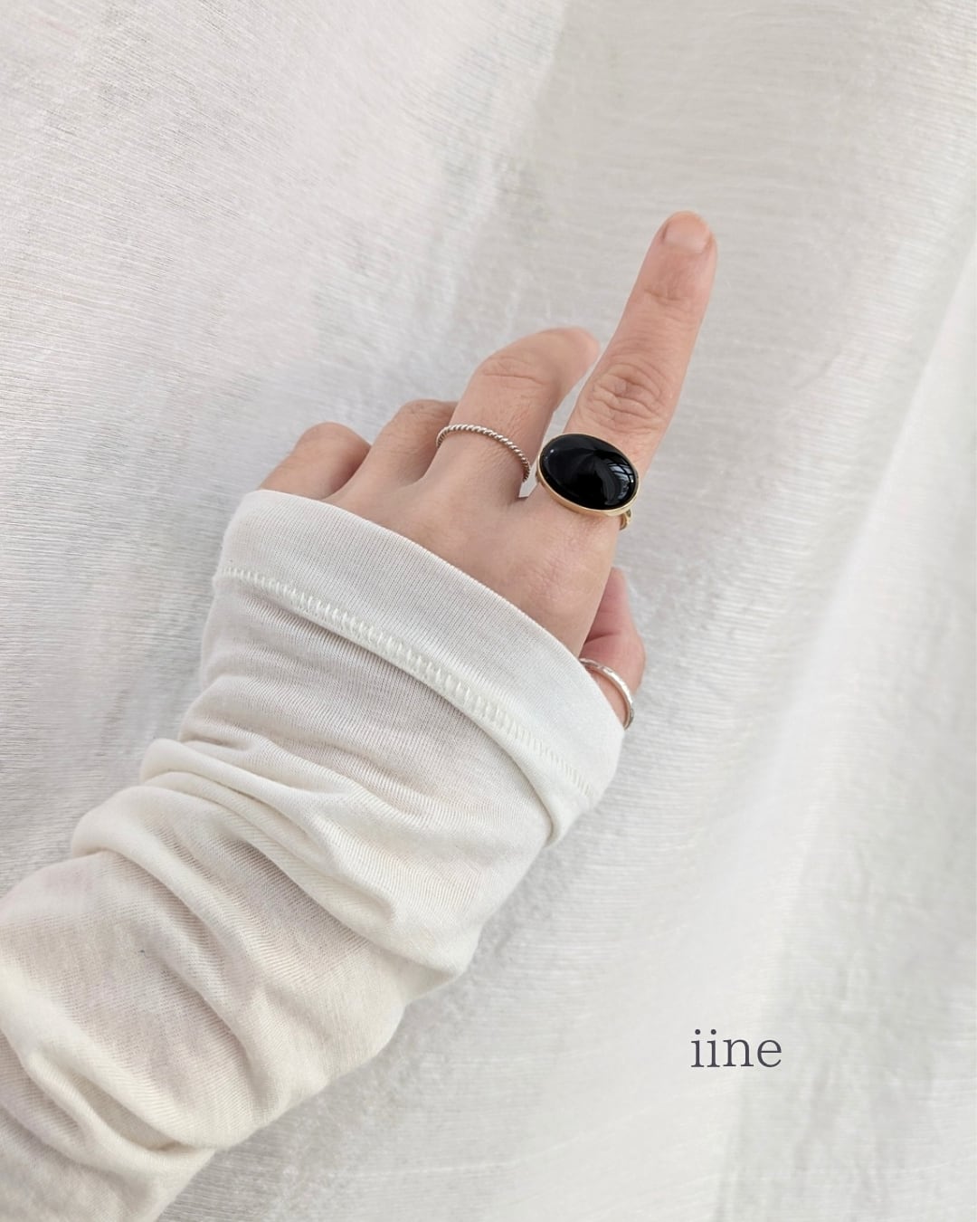 冬はニットの手元に、夏はTシャツの手元に、どちらもとても映えるリングかと思います。