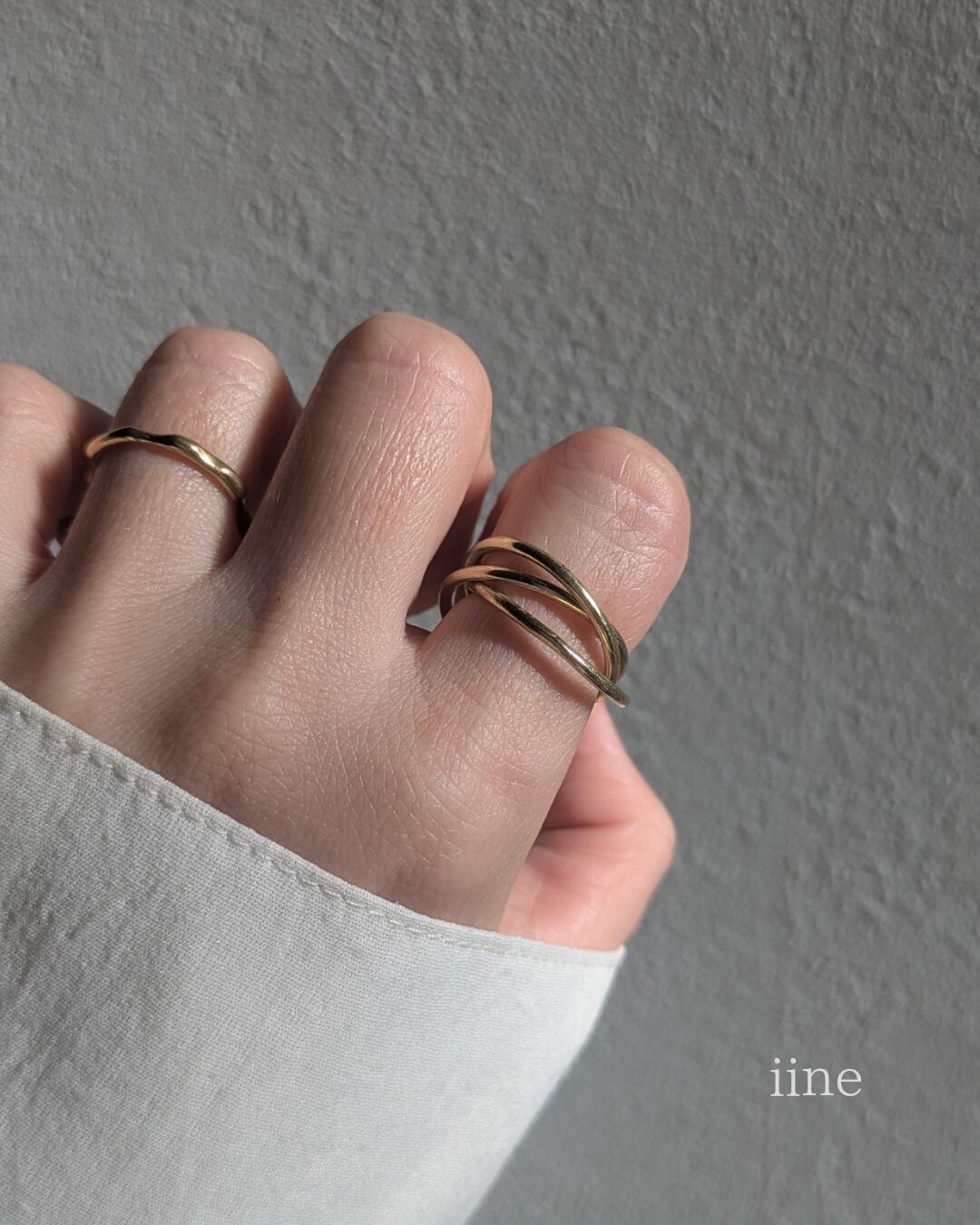 着けるたび印象が変わる*重なり合う*真鍮3連リング