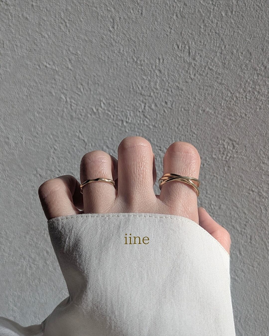 重なり方で見え方が変わるので、透かしリングのような、ボリュームリングのような、一つで様々な見え方をします。