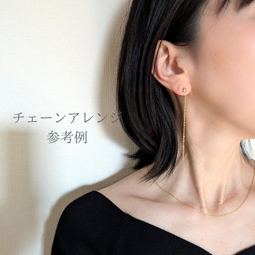 ◆ピアスポストに通してアレンジ出来る14kgfのロングチェーンをお付け出来ます。