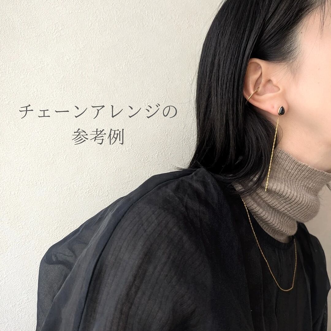 どの向きから見てもキラキラと美しいチェーンで、1つお持ち頂いているとお手持ちのピアスに合わせ様々なアレンジをして頂けます。