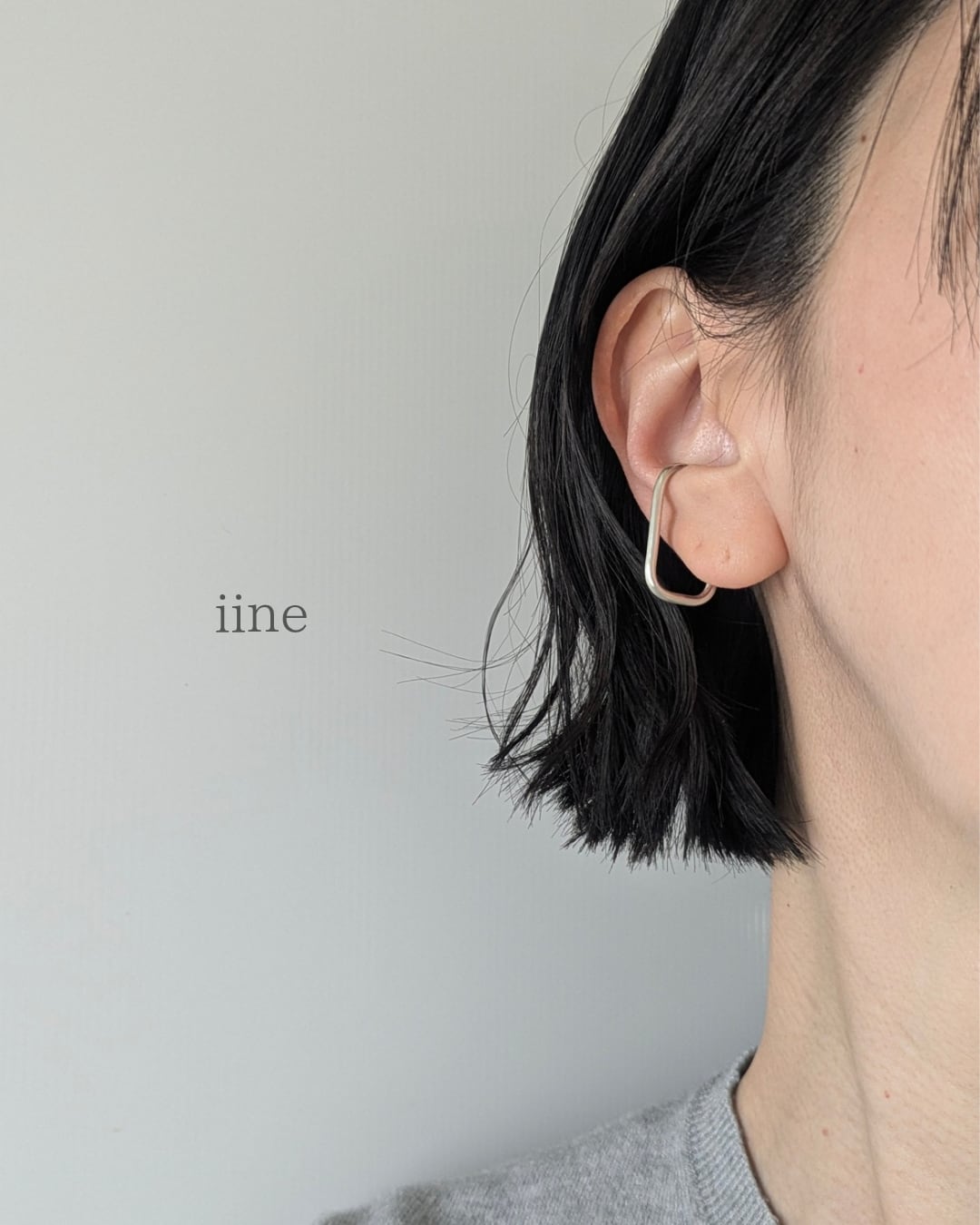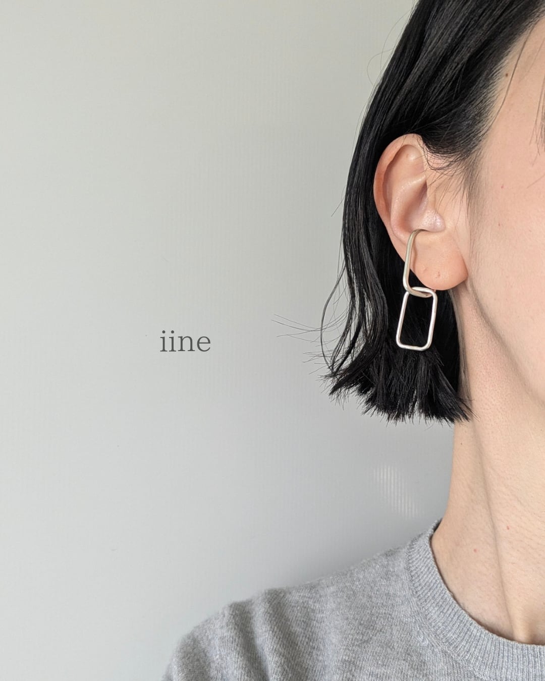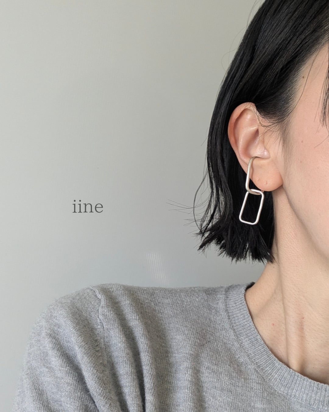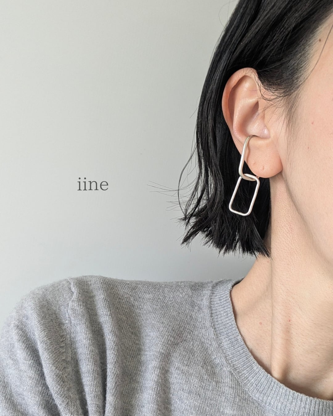 イヤーカフとスクエアモチーフの素材の太さを変えており、ぶら下げるタイプのカフですが軽くて着けやすい仕上がりになっているかと思います。